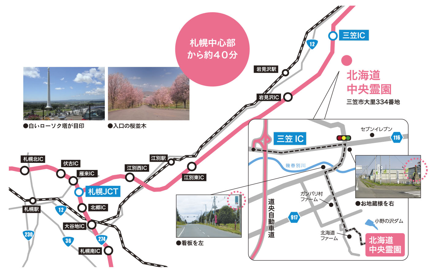 また、一般道を利用しても国道12号線札幌~岩見沢まで完全4車線化工事が完了しており、都心部のようなお盆期間の交通渋滞が少なく札幌からのアクセスは良好です。
