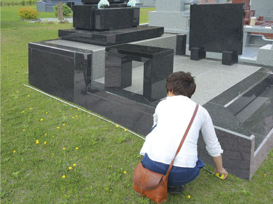 墓じまいをしたいお墓の写真と、お墓横の長さ(❶)と、奥行き(❷)を下記フォームからお送りください。