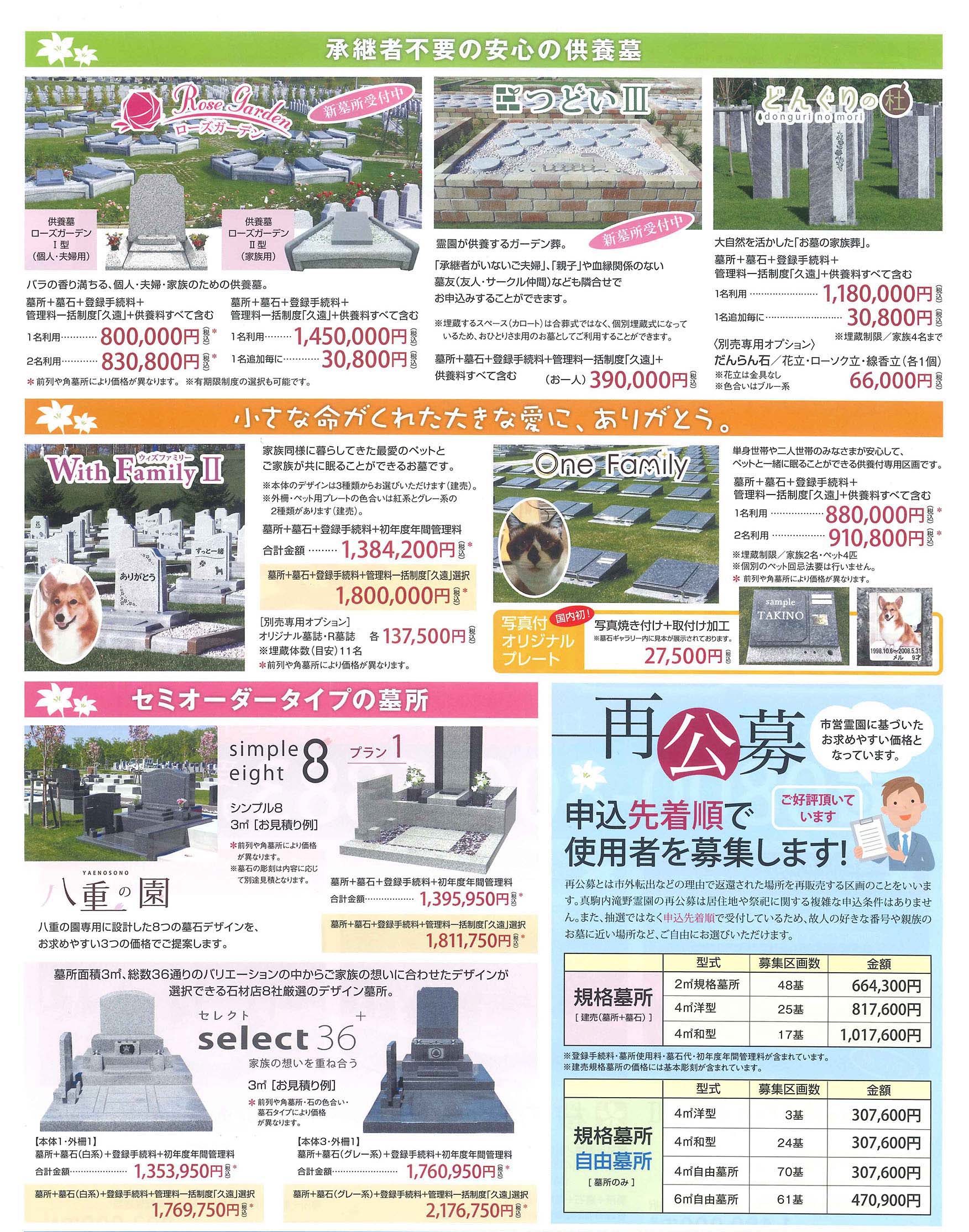▲『再公募』墓所は市営霊園に近い価格となっています。