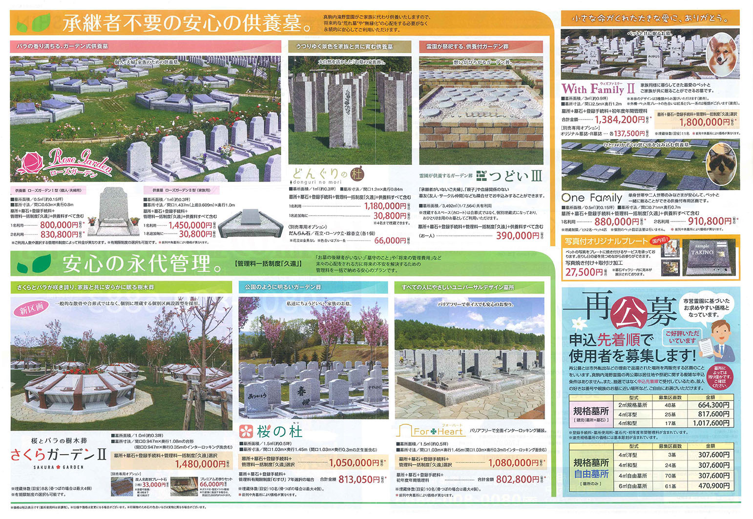 ▲『再公募』墓所は市営霊園に近い価格となっています。