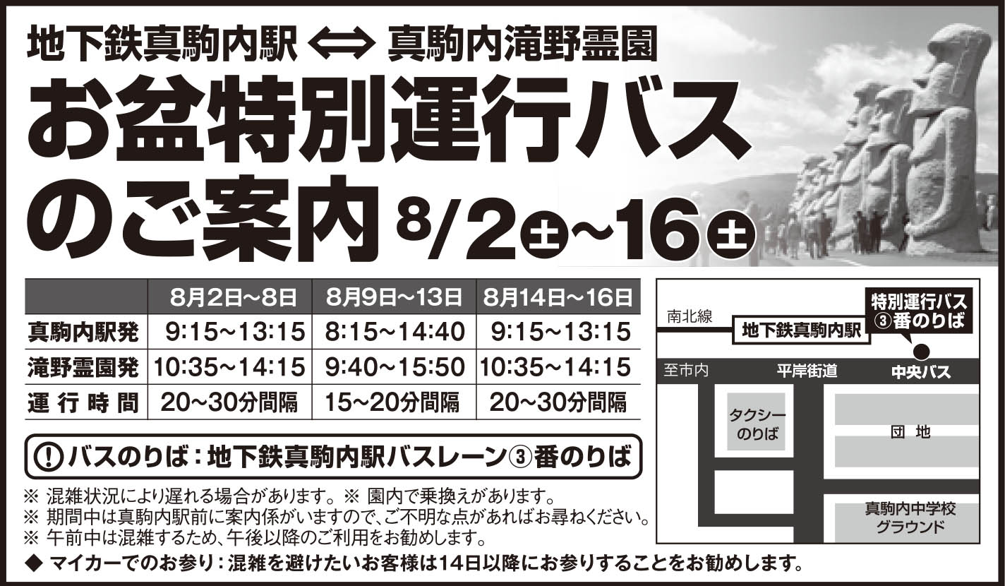 ▲混雑が予想されますのでお盆特別運行バスをご利用ください。