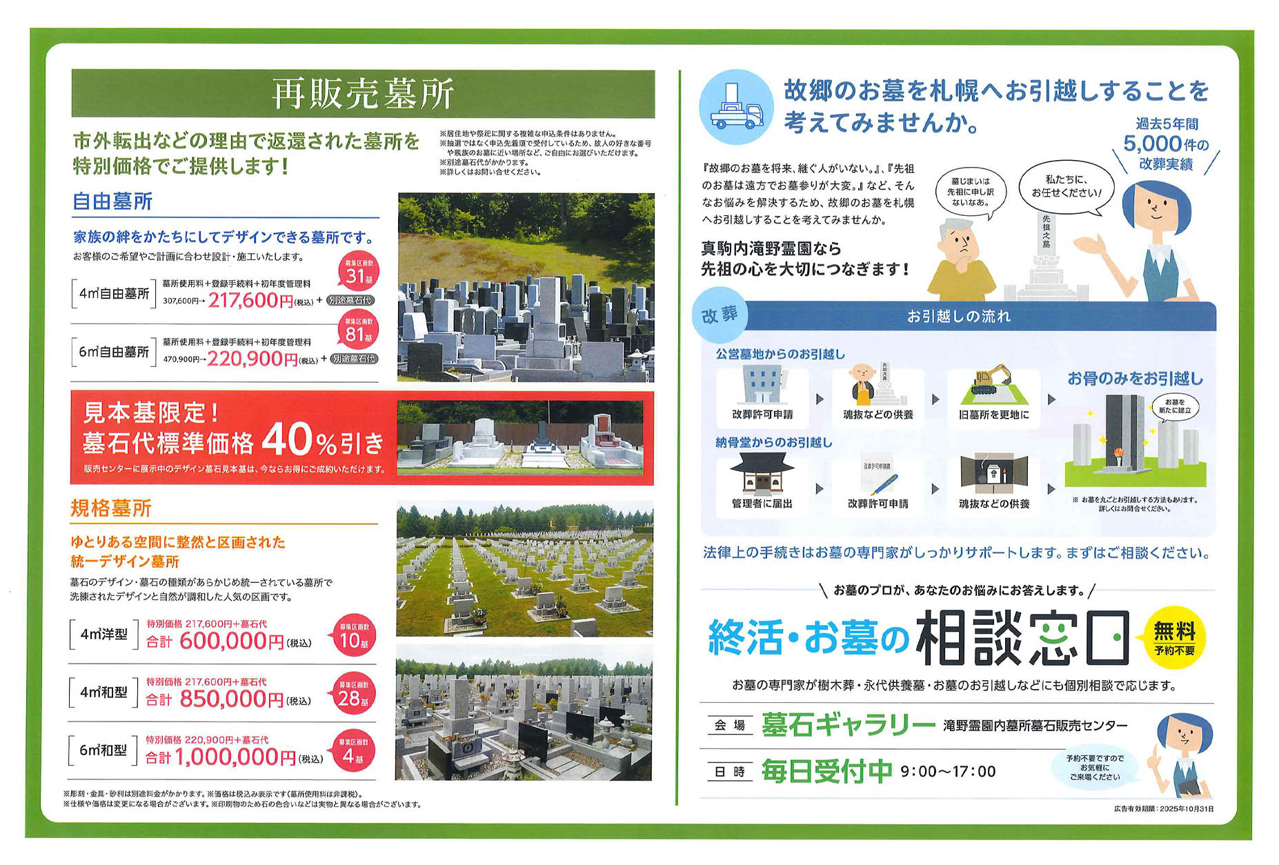 札幌市営霊園に準ずるお求めやすい価格で提供することができます。